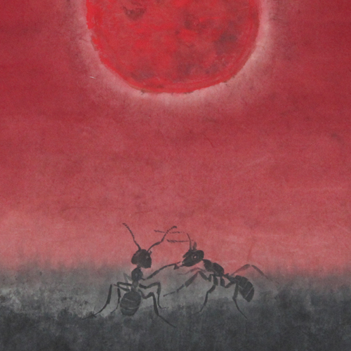 他所作的水墨蚂蚁蕴涵着一种巨大的力量。