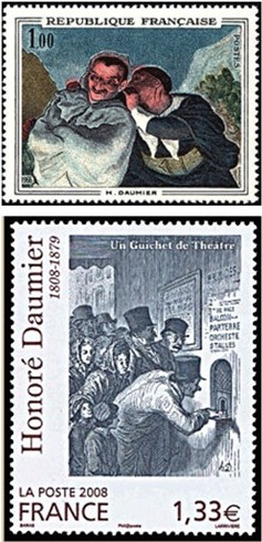 为纪念这位伟大的画家,法国艺术界推出了一系列以其作品为主题的纪念邮票。发行于1966年12月12日再现《克里斯平和斯卡平》油画的法国邮票,受到当时法国邮票爱好者的追捧。为了满足广大邮票艺术迷的要求,2008年11月10日又推出了一张再现《剧院售票口》版画的法国邮票。这两枚珍贵的邮票,因具有重要的艺术价值和收藏价值又被推向了一个新的高度,如今成为收藏界最富有价值的邮票收藏,有望创造出新的升值传奇。