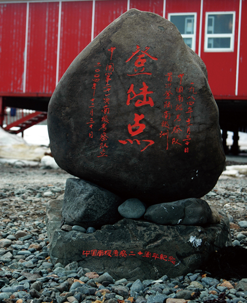 2004年12月,在南极长城站为纪念我国首次登上南极洲20周年,书写、刻凿碑文。