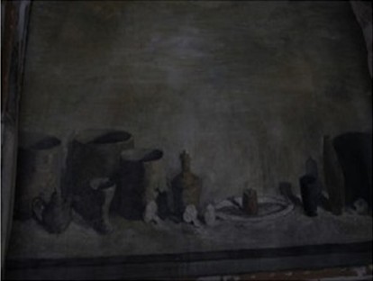 《城墙下的陶土生活》表现出雷米•艾融Remy Aron对光影复杂关系的深刻理解和完美诠释。桌面无序地摆放着各种瓶子和杯子,之间的光影关系因为这样的堆放而变得颇为复杂。相互间的投影,反光等等都很难辨识和诠释,但从画面整体观感来说,雷米•艾融Remy Aron让画面表达地很自然流畅,没有突兀,让视觉体验焕然一新。雷米对画中每个静物刻画可谓细致入微。就单个静物而言,刻画充满细节,光影的逐层渐变,由于形状的不同,呈现的明暗层次也不相同;从整个静物组合出发,有个精确统一的光源点,之间的相互影响也表现地很到位。反光,折射等因素也被雷米考虑在内,甚至为背景的墙面都和静物处在一个统一的光影体系下,这整体画面浑然一体。同时,虽然雷米对这幅作品大多采用稍显暗淡的色调,但观者在观赏此幅作品时不会觉得枯燥乏味,相反地,画面这种随意的布局充满了趣味。冷色调为主的画面风格也体现出雷米对于画面逼真度的苛刻。画家到位的表达和娴熟地画面语言让观者对画面有了强烈的认同感。通过光影关系来体现画面立体和真实感,对于雷米而言可谓驾轻就熟。