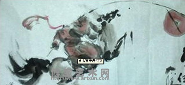 他的国画写出的新风格,更是深思不可多得.<套住太阳>那幅国画,写了一匹飞驰的骏马与骑士协调的套马的英姿,是那么雄风肆放,是那么生机盎然,以独特的创意在泼墨挥毫中生发着深邃的哲理与佛禅之意,那轮红火的太阳成了光明的使者而不可多得.<屹立东方>中的毛泽东,在画笔的勾勒中风度翩翩的神韵让人崇敬,这是国画的大写意达到了大繁从简的传神效力.在不用细线条的勾画中,传情达意地吸人眼球,<天生我才>中写出了人”必有用”的生动形象,那放荡无羁的神情,如狂妄之大诗人仰天而叹,让画家的游思放飞于苍穹之上,尽呼于人间之天地,如他的<神牛> <精卫填海> <驯> <一片冰心在玉壶> <开拓> <放逐诗篇> <月下婵娟>等画作,皆一脉相承,无不写其意,形其神态,而呼之欲出.他用笔力来召喚读者追随作者之意,导向寓意深层之境,游离中贴近原意,貌似中而神合.达到合二为一并将双方之情融为一体,可谓之拍案叫绝的好,传神传情令人感叹不已.