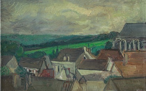 《居住的田野》(Montfort-L'amaury)是雷米·艾融追求风格融合的大胆尝试,该作品创作于1997年,是雷米探索拓展空间立体画派风格的超越之作。简单地概括《居住的田野》,画面分为两个部分,近处的屋顶群,和远处的山峦天空。这样的布局意在让观者在视觉上产生强烈的反差。就常理而言,将视觉焦点放在一处,另外一处就会变得模糊。但在这幅作品中,雷米突破性地将近景和远景结合呈现在观者眼前,一种别样的感受油然而生。再加上雷米结合印象画派的用色风格,更是强化了这种观感体验。再者,从细节出发,近景的屋顶群虽然看似随意,但并不杂乱。观者在观赏中能找到视觉和逻辑的认同感,可以说这些屋顶必定不是雷米随性所画。屋顶的用色也可谓经过反复斟酌,没有突兀之感,属于一个色系,同样也增加了观者的视觉认同感。远处山峦田野也富有层次感,可以从中看出雷米不但对静物空间结构关系有深入的研究,同时对色彩的把握和运用也颇为成熟。《居住的田野》从简单的构图,简单的用色出发,却丝毫不能掩饰雷米高超的艺术领悟和纯熟的绘画技法。