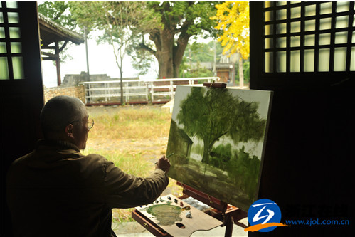 浙江在线11月27日讯(记者 张占) 雨打古樟树,瓯江帆影长。今天,雨中的古堰画乡稍有寒意,往日热闹的古镇老街、河岸港头静谧了许多,静到几乎可以听到各个角落里画家们在画布上作画的摩挲声。是的,今天古堰画乡迎来了一批特殊的客人,他们是来自全国各地的13名知名画家。接下来一周时间,他们将与30名丽水市美术家协会会员一道,生活在风景如画的古堰画乡,进行写生创作活动。