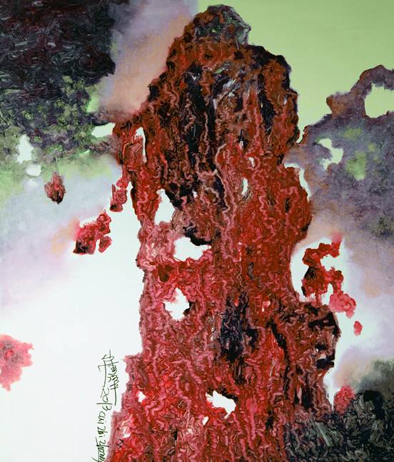 崔治中最近笔下的表达,更偏于情感与灵魂的表达,不刻意在形上做文章,而是一种全新图式,就是意动画动,试图完成一种全新图式,就是完成一种你看得到想不到的图景。在他看来,一个纯属的表象实质有可能会是没有图像的世界,但却会最接近真实的世界。眼睛代替内心的寻找不一定是真实的,真空的世界我们无法控制,一定有一种看不见的现场,而现实和现场是不可能交换的,现场的独自存在消逝和改变着自己,面对这种现场,艺术家是无奈的,而他试图通过时间和空间以及绘画来留住这种精神的现场。这世界的确有不少这样的图景,而通过艺术的方式抵达这种境界,非常危险却又往往出彩。生命和世界,艺术和生命究竟是什么关系?无数的解答形成无数的答案,而崔治中试图用抽象的图式去表现这千万种解答,没有文字却比文字更具力量。他没有模拟现实或现实之外可感的具象,他放弃了原有固定或形成的模式,他在用石头砸自己的脚,这种图式看似无形却形态万千,这种图式看似盲目却方向清晰,将无形的精神世界,立体地、梦幻地呈现出来。他当然有个人主义,表现主义里面的个人情结和浪漫,但他探讨的精神极限、或者说世界的彼岸,怀着对理想、人类本性的渴望,这种至真、至纯的状态,已经超越了个人表现主义的局限,他在延伸和冲击当下,这种超抽象的流动或聚集形成了一种力量,不可忽视的力量,他朝着世界的内部和深处在拓展。他不要描述和故事,也不需要情结和雕琢,他在尝试更丰富的知觉世界,暗示物的内部和背部,呈现看不见的真实世界,完成一次介于理性与非理想支架的表达,我感受到了崔治中作品在现实世界的轰鸣带来物体的沉寂,也感受到了他这种表达的愉悦、快感和无限的可能。( 宋子涵)