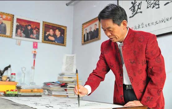 陕西书法名家王双虎对自己曾有句名言:“作字先做人”。这是他做人的基本原则,记者在网上查一王双虎的书法作品,觉得这话朴实却深刻。对当今书坛仍有警示之效。书法艺术是高雅艺术,快乐艺术。它不仅可以抒情达志,还能够修身养性。以平和淡雅的心态写之、爱之,常与几个书坛好友,品茶论道,挥毫拨墨,此亦人生一大乐事也。反之,如果把书法当作成名的捷径,赚钱的手段,拉关系的渠道,就与书法艺术的本质背道而驰了。因此,王双虎认为,书者应做到“五去”。即:去猛燥,去名利,去浮滑,去做作,去奴俗。日前,记者对陕西著名书法家王双虎进行专访,为广大网友解读“作字先做人”内涵。