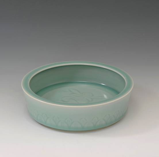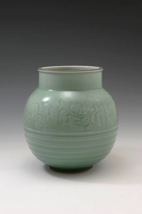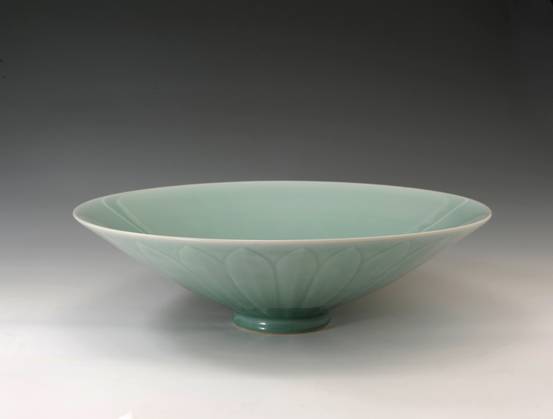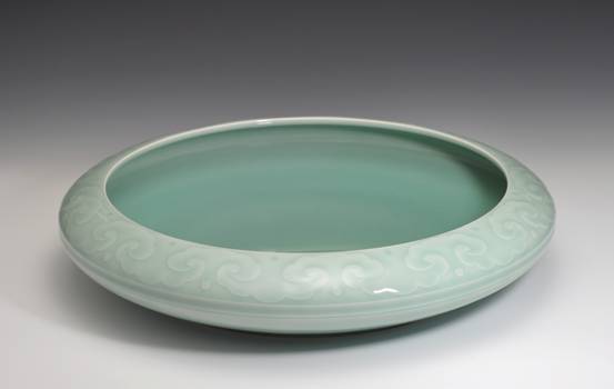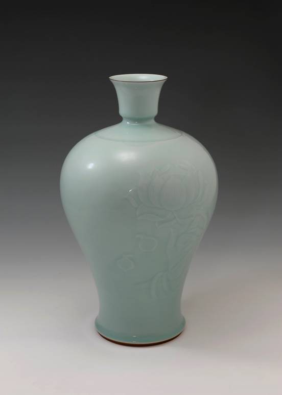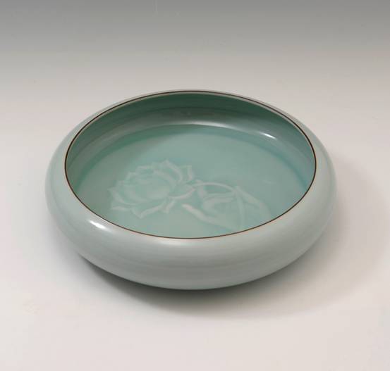 中国传统文化赋予了玉独特的含义,“以玉比德”,“温润而泽,仁也。”的儒家思想赋予了玉独特的人文特征,青瓷因其类玉的特质为世人所喜爱。浙江省高级工艺美术师陈永德,被人称为龙泉青瓷业界的实力派艺人,其作品赏其意,于润美中尽透深沉雅正,如苏轼所说:“质而实绮,癯而实腴”,质朴无华却意蕴深远;观其象,润泽可鉴、清新澄净、晶莹蕴藉,堪与玉媲美。有人这样评价陈永德老师的作品:“具有类玉的本质,既传承了宋元青瓷的古朴,又结合现代艺术的审美趣味,在传统中推陈出新;作品釉色清雅秀丽,冲淡自然而又气韵十足;装饰手法以刻花见长,刀法娴熟峻逸,取宋人之法度,自成风格。”