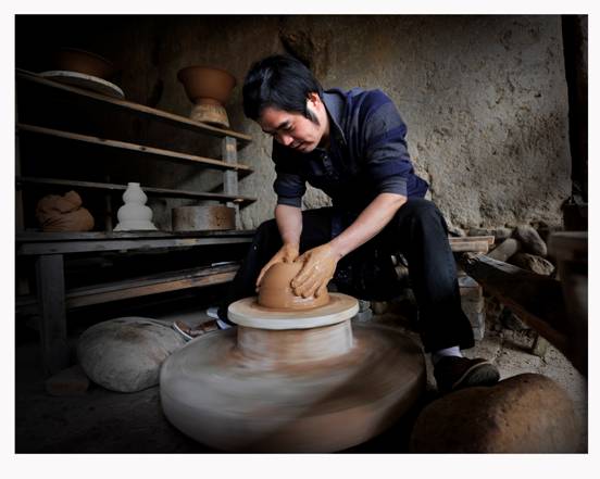 一方水土养一方人,龙泉宝溪的山山水水,风俗人情,勤奋坚韧孕育着陈永德的秉性和理想,促使他早早得惠于那里的青瓷文化熏陶,很小的时候就钟情于这一神奇的艺术。因为亲眼看着乡亲们经过捶泥、拉坯、成型、上釉到入炉烧制出成品以后,他惊叹于青瓷在窑火炼烧后,如涅磐一般,呈现出千姿百态的华丽,至此,他便下定决心从艺青瓷,令人欣慰的是,他不仅坚持了自己的理想,而且还因为青瓷支撑起了属于自己的一片天空。