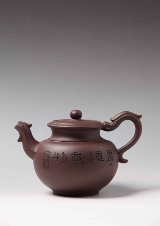 吴伟华说,从17岁进入长兴紫砂厂学艺开始就无法挣脱他的紫砂梦魇。当他已然明白,这不只是得到一个赖以生存饭碗,而是命运让他走近了艺术殿堂的门槛,就没有敢停止练书法学绘画刻壶,读书找资料绘草图设计,槌泥打身筒修明针制壶。1985年进入天津美术学院陶瓷专业(原雕塑系)跟随刘建强、秦征、张世范、吴恩海等教授拜师学习深造,更敦促他对紫砂艺术的孜孜不倦乃至今天仍然兴致怏然。我们问他,如逐梦般痴迷且几十年矢志不渝有什么原因么?吴伟华大师说:“开始我也很想知道除了兴趣以外的为什么,直很多年前我祖父吴德堂祖叔吴友庆制作的那两把紫砂壶被发掘以后,我才想,是不是我骨子里也带着点紫砂文化的遗传基因啊?”(其一,《南瓜壶》,壶身铭:“疾苦,爱妻罗云娣,有温饱是一大快事,友庆手捏於光绪二十三年长兴白岘吴芥口记吴德堂”、有瓜之命也;)其二,碗壶,壶銘:“春风花浪,刘云石,饮之清心,葵亥春”,底款:咏诗)