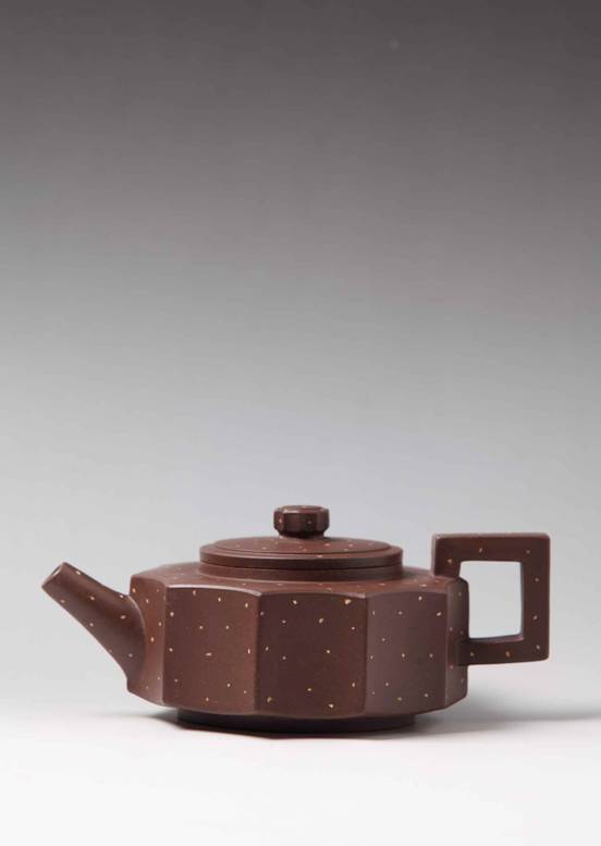 已经是制壶大家的吴伟华,素以最能彰显功底的传统作品为主,偶有灵感也会创作一些与家乡题材有关的作品,譬如记录长兴名茶的《紫笋壶》、宣传长兴茶文化的《茶经壶》、具长兴地域特色的《银杏壶》、《太湖明珠壶》等等,这些独一无二的作品因为专业专注,每一款都很精致也都很精典。每一个艺术家对从事的职业都会有自己独特的理解和感悟,吴伟华老师特别善于把冷静、理性和顿起的灵感激情与紫砂艺术融为一体,他的作品不仅将传统工艺表述得有声有色,还精于将紫砂艺术的特性发挥得淋漓尽致。按照家乡的地域文化环境创作的那些照片,他用紫砂艺术独特的语言在作品中倾诉自己爱祖国爱家乡的精神内涵,以或粗犷或细腻;或模糊或清晰;或淡雅或浓烈;或古朴稚拙或前卫抽象的技法,真可谓“神随形走,山伴水流。意走游龙,壶逞风流”。正如吴伟华大师的许多壶迷所言:他的作品构思新颖、题材广泛,设计精巧,功底扎实,手法多样,千姿百态,不拘一格,传统中见新意、高雅中见清奇、深厚中见秀丽,实为当代陶艺家中的佼佼者。