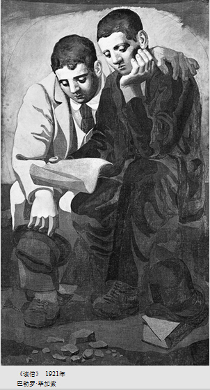 首先,10幅作品贯穿了人类社会发展始终的“普世情感”。《木匠圣约瑟》中,年幼的耶稣用烛光守护着正在打制十字架的养父约瑟,而茫然不知这支十字架便是自己作为人类的生命终结之所。约瑟望向儿子的一刻,眼神中的慈祥哀悯一如人间任何父亲;《门闩》中的卧室,男人粗暴狂野,女人半推半就,画面左下角的苹果与右上角的门闩赋予整幅画以不朽的张力,俗世情欲支配下的男女之爱被表达得淋漓尽致;《读信》成画于毕加索的好友、法国作家纪尧姆·阿波利奈尔过世多年之后,画中的两人并肩而坐,毕加索一只手搭在好友肩头,仿佛要随时给予这个个子比自己更高、却有些脆弱的朋友以保护和依靠。