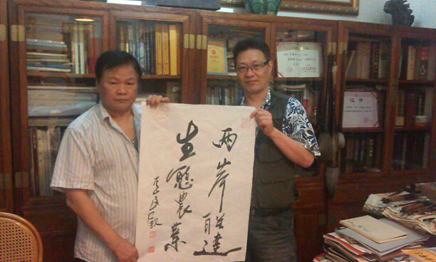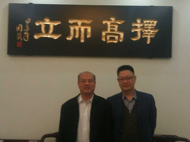 (周国胜先生与广东省文史馆馆长兼省人民政府参事室主任周义先生在其办公室合影)