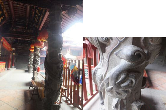 慈济祖宫正殿的四根蟠龙石柱也是建宫原物,石柱上三条落地长龙张开五爪,蜿蜒盘旋,活灵活现,一条五爪冲天龙,呼啸而上,欲冲云霄。自古以来,龙分等级,常见为三爪龙或四爪龙,只有皇宫或由皇帝所赐建筑才配五爪龙。这座祖宫里,到处雕刻着神态各异的五爪龙。