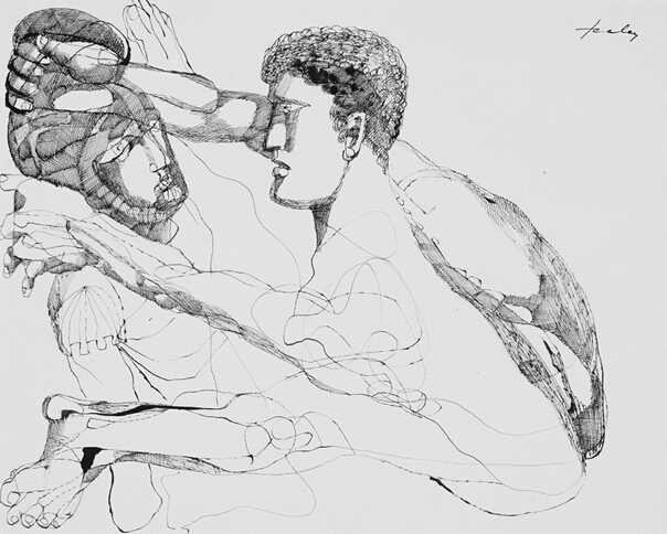 拉贾什•萨雷(Szalaj Lajos,1909~1995),匈牙利艺术家,其小学时代便才华横溢。1917年萨雷战争题材的绘画就在维也纳展览。曾在巴黎、纽约等国际艺术中心生活学习的他,与当时的艺术大师多有交往。巴勃罗•毕加索称之为自己以外“最伟大的世界绘画艺术家”。同时,阿根廷艺术史学家将萨雷在阿根廷教授美术的时间标志为“前萨雷时代”和“后萨雷时代”,可见萨雷对于阿根廷艺术界的影响。萨雷最初为油彩画,后改墨水素描且成为其艺术表现的唯一形式。萨雷作品除基督教题材外,希腊罗马神话的人物故事也是创作的重要内容,包括人生感情:爱、悲伤、欢乐、亲情、友情、死亡……萨雷的作品犹如一首首可以读出不同节奏与韵律的美丽的诗。