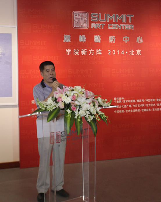 开幕式上,本次展会的策展人杨维民教授就本次展览的情况作了介绍。他说,自2008年“学院新方阵”首次举办以来,今年已经第七次举办。目前“学院新方阵”已经在学术界、艺术节确立了自己的品牌效应,真正成为了中国当代水墨艺术的第一方阵。这次与巅峰艺术中心联合举办的《学院新方阵2014年度展》,无论从规模和影响力上都将超越以往历届。