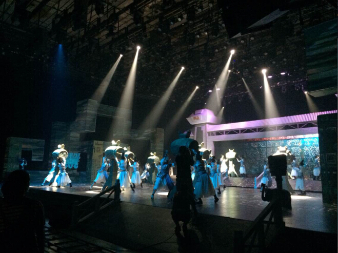 记者在现场看到点亮的舞台充满中国风元素,简约的设计但不失大气唯美,眼前一群穿越千年风雨而来的舞者,艺术再现那段商代铸造方罍之王的盛大场景,此为皿之音-祈的一个场景。