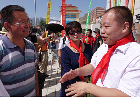 《中国艺术家》杂志社长王力军与肃南裕固族自治县红湾小学校长亲切交谈