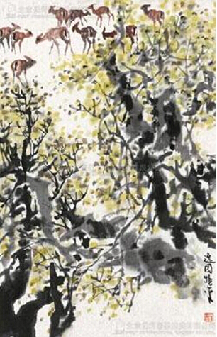 刘兆平《林中》 镜心 设色纸本 (69×45cm)
