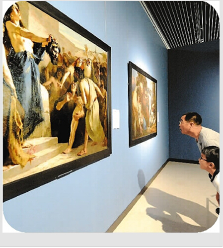 8月14日,中法两国共同筹备的“大师与大师——徐悲鸿与法国学院大家作品展”在郑州的河南博物院开展。 据介绍,本次展览共有100余幅徐悲鸿与法国大家的作品展出,以纪念中法建交50周年。展期为8月14日至10月19日。 图为参观者在欣赏展品。
