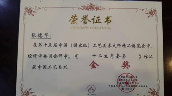 张德华,工艺美术大师。 1971年生于广东,自1993年于广东惠州经营名茶名壶至今。为了更好地宣传弘扬紫砂文化,张德华全身心的投入学习和实践紫砂文化的理论及实际技艺操作。经多年的不断努力学习,反复请教,凭自己的悟性和禀赋能临制传统形的紫砂壶了。以“艺为先,技为辅”的艺术理念。给经营选壶、壶艺制作奠定了艺术思想基础,提高了审美能力,发展扩大了壶艺经营事业。 2010年5月7日在第二届佛山茶叶博览会上《双鼠壶》获金奖,《飞翔壶》获银奖。“进德大品石飘壶”在2010第二届清远茶叶博览会银奖。2013年获中国上海国际艺术节第十届中国工艺美术大师精品博览会金奖。