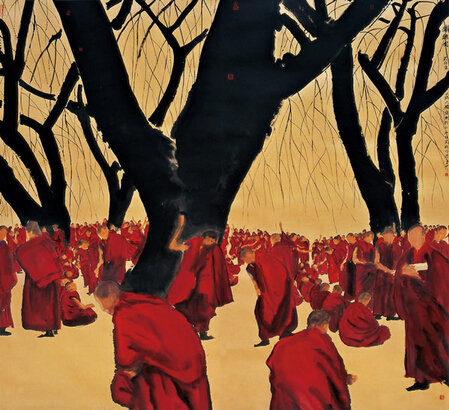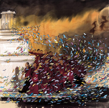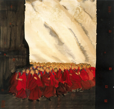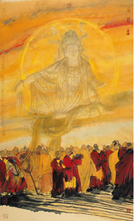评论文章:寇月朋的《清净世界系列》系列作品,不仅是一种艺术形式的创造,更是一种审美理想的崇尚和追求.当这种审美理想凝结、体现在他的作品中,以后便构成艺术特定的精神指向,那就是赋美学以信仰品质,在信仰中开启相应的艺术形式.应该说,这个在近百年来都未能得到重视的艺术与宗教关系的问题,因寇月朋《清净世界系列》的美学文本出现而起到振聋发聩的作用.