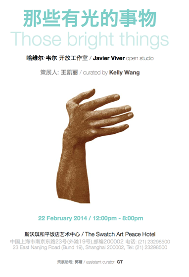 2014年2月22日下午1点半,西班牙艺术家哈维尔•韦尔在外滩的斯沃琪和平饭店艺术中心展示了其半年来的创作,展览名为《那些有光的事物》,策展人王凯丽(Kelly Wang)。该系列展现了艺术家对哈维尔•韦尔对“自然”与“物质”的思考。其创作的静物雕塑作品经过油脂和丙烯颜料的绘画,并包裹在橡胶模型上。因此产生一种3D的效果。