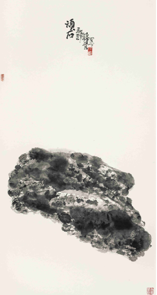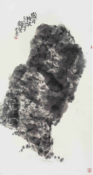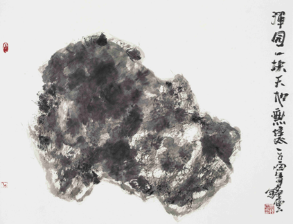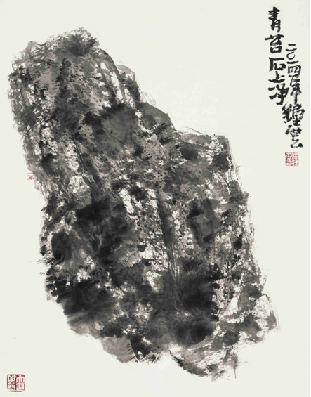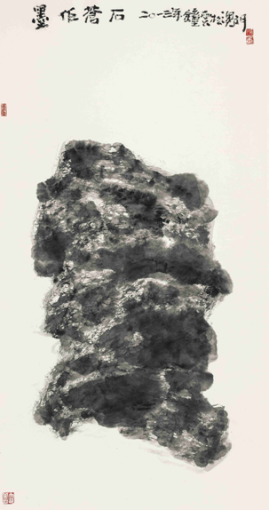 冯钟云作为一位当代水墨的艺术家,其水墨形式在不断的突破与重构之中逐渐了形成了自我的艺术语言。在他的笔墨之中,不得不提及有关“灵韵”的概念。“灵韵”作为西方哲学体系的一个思想体系,哲学家夫斯凯尔(Karl Wolfskehl)把“灵韵”称为“生命的呼吸”, 而本雅明将“情绪”(stimmung)作为心理学意义上给“灵韵”以独特的阐释。冯钟云的水墨作为一个东方艺术的案例,似乎更加切合的作为这一哲学体系的佐证。东方传统的艺术精神中,不断的在强调的一种“中得心源”的艺术境界,在这概念上与“灵韵”说互为依托,所谓“创造艺术的,是透过灵韵的燃烧一般的面纱的眼神”,冯钟云正是通过这样的思想境界不断的进行水墨形式的创作与实验。其作品“苍石”系列,所画物非物,是一种冲破了现实景观的释放与精神的自由意识。其中呈现出的艺术格调,正如夫斯凯尔(Karl Wolfskehl)所指的“它(灵韵)是每一种物质形态所散发出的,它冲破自身而出,又将自身包围”。在这里,有关物质性与精神性的辩证关系,通过“灵韵”的意识将二者融为一体,“苍石”的对象被精神化的同时,冯钟云将自我的生命体验与气韵注入其水墨的方寸之地。自我与天地的统一形成了一种神秘的艺术之间的“自由意志”。
