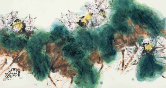 抽象画《荷塘》获“世界华人艺术大展”国际荣誉金奖