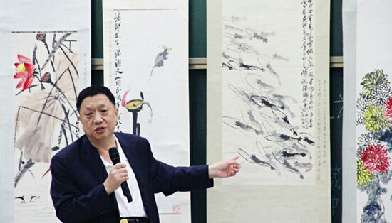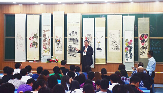 整场讲座,刘文杰先生从中国书画与国学的关系、书画的发展及现状和齐白石作品鉴赏等方面向前来听讲座的师生深入浅出的传达了“天人合一”、“道法自然”是中国书画审美最高标准”的核心思想。讲座不仅丰富了大学生对中国传统书画的认识,让老师和同学们大饱眼福,拉近了大学生与国宝级传统书画作品的距离。