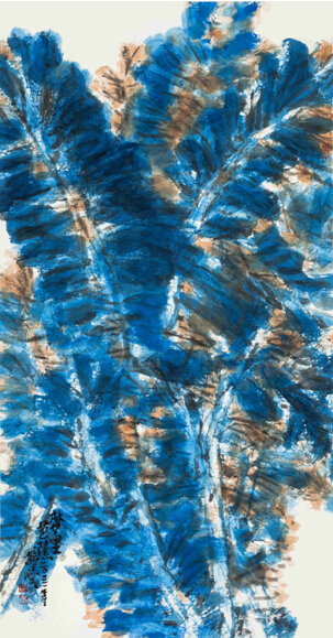 更有《红戏》,《蓝戏》,《大汉风》,《千秋舞台》,四尺整张(136X68cm)的作品,戏剧文化的精髓,名伶的醉人神态,台上的精彩一格,随着通透、沉稳、有感染力的矿物“原色”在墨与水的衬托和对照下格外生动传神,述说着“京腔国韵”的板眼和节奏。还有《三羊开泰》,《印象群马》,虽有口彩之意,命题之嫌,但彰显着他的风格,不媚俗,不娇作。“夏之荷”,“春之藤”可见画家笔墨进化的轨迹,生动传递着花蜜的香气,植物的精神,如在眼前,幻若梦中,想想也是醉了。