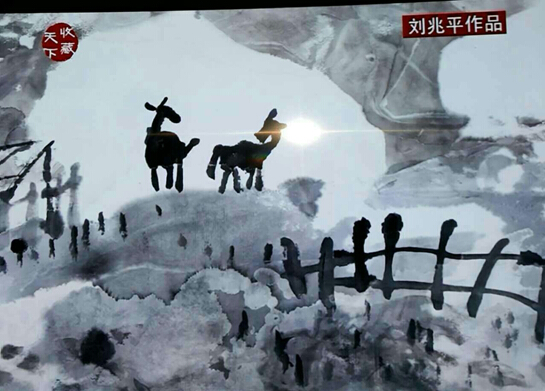 他的诗意画以水墨交融见长。中国画水晕墨章的历史,渊源流长,杜甫名句“元气淋漓障犹溼,真宰上诉天应泣”就是讴歌水墨山水的。以“外师造化,中得心源”著名的张璪,可能是画史上“玩”水墨的第一能手,有人评他的水墨画说:“高低秀丽,咫尺重深,石尖欲落,,泉噴如吼。其近也,若逼人而寒,其远也,若极天之尽。”这正是我们读刘兆平的水墨诗意画感受到的意趣和快感。