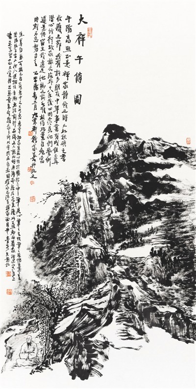 新世纪以来,据友人张子宁著文评说,穆家善可谓两条腿走路:一是更深入地领会传统的精华,从题画看,他对于石涛、董其昌、王原祁、黄宾虹的画论都能心领神会,得其要妙。二是更进一步师法造化,到美国的大峡谷、黄石公园、优胜美地,中国的黄山、齐云山写生。创作则以中国的艺术精神,实地的观察感受,熔铸古今,旁参西画,水墨淋漓、墨色交辉、磅礴活脱。近年,他更化繁为简,推出了苍茫浑厚一片化机的焦墨山水。此前,他固然极重用笔,但一律发挥“水晕墨章”,此时则自觉地以焦墨代水墨,正如他题画中所说:“变法水墨,焦墨可开蹊径。”于是,他的独具个性的艺术从此臻于大成。