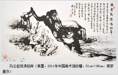近百年来,中国画的传统有二,一谓引西入中,二谓借古开今。前者无论中体西用,还是西体中用,都在积极学习西方,却没有完全隔断传统,只是重视科学意识,改变视觉观念,也改造了语言方式,在世纪的变革中渐成主流。后者则拉开中西距离,稳步与时俱进,不是绝然不吸纳西画因素,而是注重可以兼容的一面,更关注艺术的人文价值,大都中体西用,坚持民族文化精神、传承民族艺术思维方式,发展笔墨语言的特色,虽时有升沉,但在近三十年来,更加引人瞩目。穆家善就是60后年龄段中发扬借古开今传统最终在焦墨山水领域卓然自立的佼佼者。