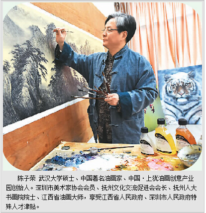 陈子荣认为,“上犹油画”这一品牌未来将在全国乃至全世界唱响。这充满上犹味道和中国味道的西洋画是中国人自己的油画,它将带着推广传播中华文化的使命,远渡重洋,扬名海外。