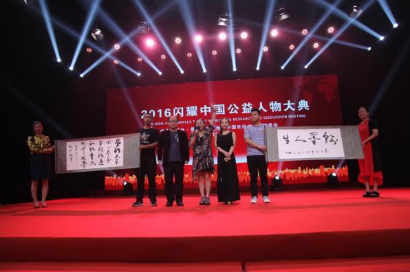 2016闪耀中国公益人物大典现场梅丽琼题写活动主题