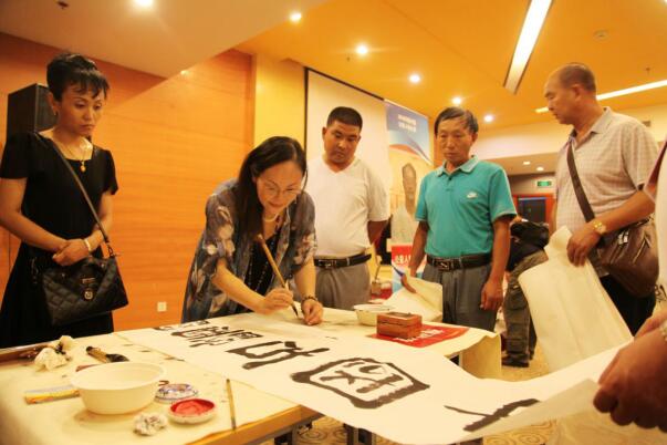 著名书画家梅丽琼、郭立民、张梓嘉、陈洪亮、赵金明、李景武、郑小娟、春沐、梅国庆、杨波、冯志伟、刘瑾铭、王宪荣、闵元、李国昌等挥毫泼墨,创作出一批雅俗共赏的书画作品,被中国世纪大采风、参会代表收藏。在活动现场,公益人物代表、参会嘉宾、媒体人士,在各个画桌之间来回观看,满心喜悦地欣赏着书画家们挥毫泼墨。