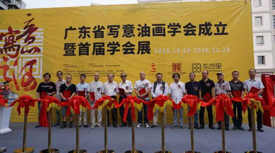 戴士和、王琨、肖谷、刘杰、刘新、李亿敏、马志明、陈和西、王锐、封冶国、孙洪敏、陈国标、杨尧、吴锐鸿、王畅怀为 “写意之河——广东省写意油画学会成立暨首届学会展”剪彩