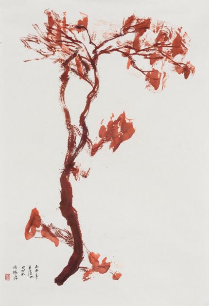 在这一批新的作品中,王老师将超逸的书法用笔施之于画面的行为越来越明显:画面中每一因子多用统一的书法性用笔,汉字的笔画在画面中不断重复的出现叠加,看似杂乱无章,实则正是这些繁缛的堆砌,构造了接近内心臆想的客观自然。画面中大量的留白,增加了想象性、虚幻性和精神的空间。