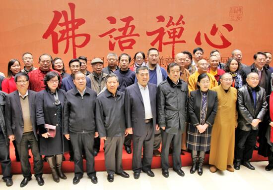 由故宫博物院中国书法研究所、中国宗教文化研究发展中心、中国政协杂志社联合主办的“第二届佛语禅心中国书画名家禅意作品邀请展”在北京政协文史馆盛大开幕。全国政协常委、河南省省长、全国政协资源环境委员会副主任李成玉;全国政协常委,全国政协书画室副主任、中国书法家协会主席苏士澍;故宫博物院副院长宋继蓉、中编办副主任王澜明;国家宗教局副局长蒋坚永;国家宗教局出版社总编辑史原朋;故宫博物院中国书法研究所所长张志和等领导出席了本次活动。