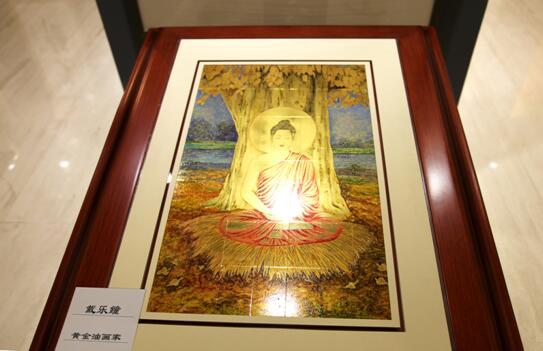 这次展出首次引入了落地“平视”展架,其展出作品是由戴乐鐘先生创作的黄金油画《释迦穆尼佛陀法相》。这幅作品创造了两个第一:第一幅在Au999黄金上手绘的宗教艺术品;第一次用这种俯瞰的展架进行艺术展览的作品。