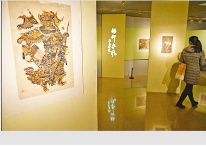 23日,媒体记者在北京中国美术馆参观展出的杨柳青年画作品。