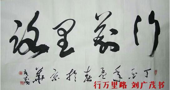 广茂先生一首诗云:“胸怀翰墨志,千辛若等闲。挥笔写春秋,墨香满人间。”这表明他习书的目的、态度和快乐。望其再接再厉,创作更多佳作,奉献于当代艺坛。