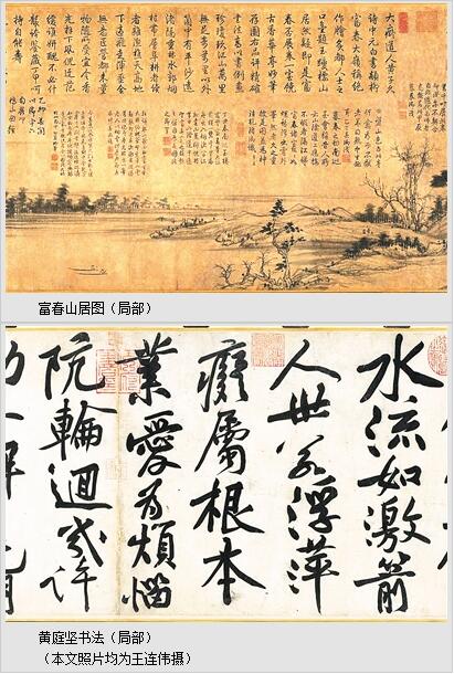 本次展出的书画包括宋代黄庭坚的《书寒山子庞居士诗》卷、以“梅妻鹤子”闻名的宋代林逋《手札二帖》等。在众多精彩作品中,元代黄公望的《富春山居图》图卷,可作为这次书画特展的代表作,该作品是乾隆一生最亲密合意的重要旅伴,每遇佳山胜水,他便取出留咏。值得一提的是,台北故宫为本次书画特展特别进行修复的明代崔子忠的《画苏轼留带图》轴,此图描绘的是苏轼与金山寺僧佛印说偈输了腰上玉带的故事。据传,乾隆皇帝第3次南巡行经金山寺时,想起藏在皇宫御书房中的此作品,特别命人快马送到,与苏轼玉带一同欣赏,此后,此画成为乾隆南巡行李箱中的常备物品。