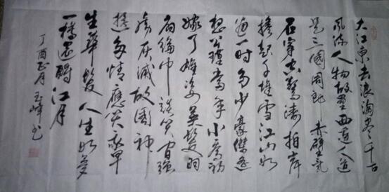胡玉峰的书法作品神高意远,令人赏心悦目,让人享受到艺术的香醇。他的书法作品格调高雅,个性鲜明,他的创作已经形成了自己独特的风格,展现出生活芬芳的情愫和高雅的审美情趣,以及对人生的感悟和思考。胡玉峰的作品充满着诗意、灵性和时代的气息。书法艺术就是他的精神家园,他为人真诚,是一位充满激情和才华的书法家。作品中蕴藏着精神的力量和生活的智慧,始终体现出时代的正能量,让人产生情感和价值观的共鸣。情怀与励志相映,如浓郁的诗情和意境,韵味悠长。胡玉峰是一位非常有悟性的书法家。作品中表现出的内涵和特有气质,往往给人惊喜和震撼。胡玉峰还是一位很有社会责任感的书法家,她经常参加社会公益活动,还每年为群众义务写春联等。这正是作为一名书法家扎根现实生活,真诚前行的印证。胡玉峰先生表示书法就是要不涂名不涂利的为人民服务,书写人生,就是要努力传承和发扬中华优秀传统文化。艺术追求永远在路上,我们坚信胡玉峰一定会更有作为。