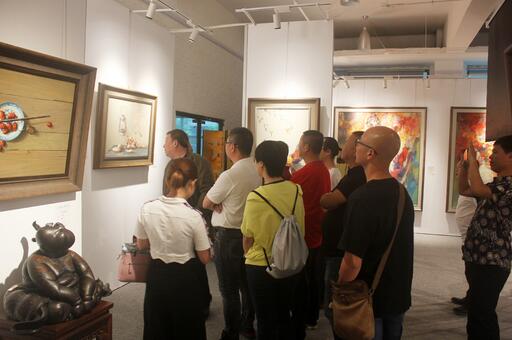 在讲堂的最后环节,何辉解答了现场听众的一些疑问,并带着大家一起参观了正在艺术厦门大讲堂举办的“写实·写意——西岸艺术家联盟油画展”,通过对展厅里作品的解读,使大家对油画的欣赏有了更清晰的认识。