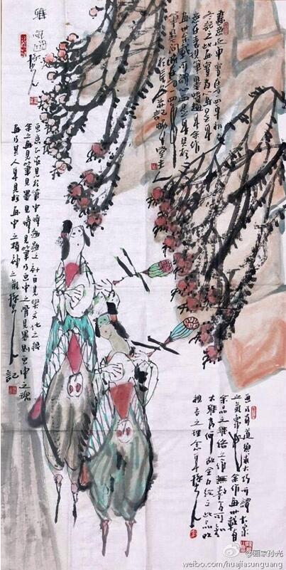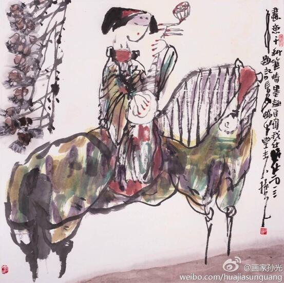 孙光先生是一位有着非常丰厚的综合素养的人文画家。画如其人,孙光先生的画作很质朴,他始终以洒脱的笔触和细腻思想去感悟生活与自然。虽然他的作品获得了不少赞誉,但是他从不固步自封。他一直勤奋地钻研各种绘画技巧,正确地把握绘画艺术的方向,广泛涉文学、哲学、美学、史学等方面的著作,以充实自己的精神世界、提升自己的艺术素养。几十年如一日,潜心修炼,博采众长。他勤奋善思,其作品气韵生动,古朴典雅,清新隽永。“感悟人、意造型、讲笔墨、重色彩”是孙光先生创立中国意彩仕女画派的艺术宗旨,追求雅、静、清、情、润、洒、彩的艺术特色,在当代中国仕女画坛独树一帜。特别是他行走在全国各地,经常和画家们进行艺术交流,以及参加一些学术活动。他博览群书,执着书法,读万卷书、行万里路让他真正提升了自己的精神和艺术水平。