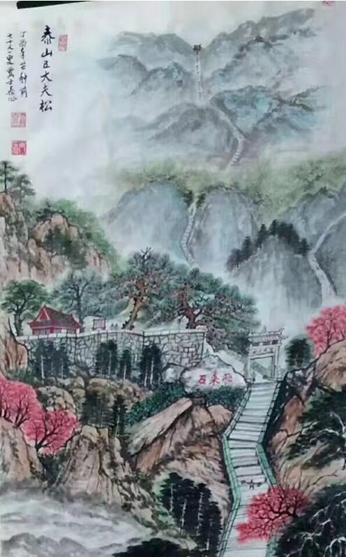 贾士泰先生的山水画主要展现壮美瑰丽、博大悠远的情怀。特别是视觉感染力、冲击力,具有独立的审美意趣。用笔遒劲俊美,章法自然,有着悟雄开阔之气,圆润豁达、韵雅而灵动之势。写景传情、借物抒志、追求意境、营造情趣,有着质朴纯正的艺术风格。他创作的山水画远看有势,近观有质,用色非常细腻,层层渲染,并善于调动多种艺术元素,表现出山水云天、树木房的和谐统一。呈现一种平和、宁静、质朴而雅致的山水情怀,追求一种天人合一的境界。作品达到笔灵墨活、皆随类赋形,随形赋美,底蕴深厚,人文内涵跃然纸上,让人喜爱和称赞。其山水画也表现了他对祖国大好河山的热爱和对艺术的虔诚。多幅作品被国内艺术馆、博物馆、纪念馆等专业机构收藏。