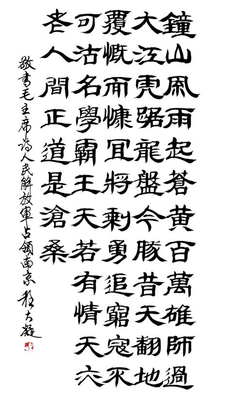 程大凝老师的书法诸体皆能,实属书法界难能可贵的人才。纵观书法的发展史,程大凝老师的作品先是以继承为基,师古不泥,溶入自我,锐意创新。其作品黑白互守,虚实相生,形体多变,运笔跌宕,跳腾凌跃。故其所书之节奏感、立体感、力度感都异乎寻常,从线条、结体、章法上可以看出其书法的悟性与灵性。程大凝书法作品符合传统书法艺术的传承风格,他完全可以作为中国书法艺术的传承人,把中国的书法艺术传承下去。