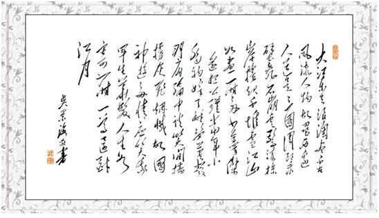 近期又创新作品,栩栩如生的主席像和形神兼备的毛体书法作品结合,力求创新,深受国内外书画名家及社会各界知名人士的好评。吴景海的书画作品被毛主席纪念堂和沂蒙革命纪念馆永久收藏。
