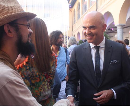 艺术家童雁汝南与洛迦诺市长marco borradori一起参加瑞士国庆活动
