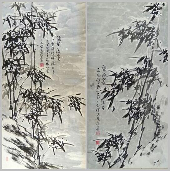 至此,我们可以读懂徐先生的作品大多是借竹缘情,托物言志。不羡四季花的妖艳,香的迷离;独钟雪中竹叶的沧桑,竿的韧挺。通过画面深浅浓淡的渲染,昭示人生纵然坎坷,当应波澜不惊。先生在题画诗上也颇下功夫,力求赋予画作新的思想内容和深邃意境。